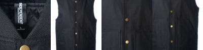 65% polyester/35% cotton twill * Three-button front closure * Two side seam patch pockets * Self-fabric binding at front neck and armholes * Single-needle hemmed bottom