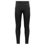 * 89% polyester/11% elastane spandex knit with Coolcore(r) fabric technology * 88% polyester/12% elastane Coolcore(r) fabric * 4-way stretch for maximum mobility * Wicks moisture * Ladies' fit * Fits close to body * Tag-free label * High waisted, wide flat waistband for secure fit and comfort * Inside key pocket * Phone pocket on upper thigh on both legs * Flatlock stitching provides comfort and helps prevent chafing