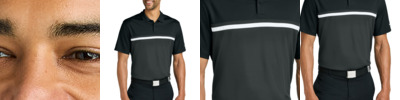 Built from at least 75% recycled polyester fabric, Nike scores a sustainable victory with this polo that stands out with colorblocking on the front and Dri-FIT moisture management technology. Details include an anti-curl flat knit collar, two-button placket with dyed-to-match buttons and rolled-forward shoulder seams for easy movement. A contrast heat transfer Swoosh logo is on the left sleeve. Made of 4-ounce, 100% polyester Dri-FIT fabric.