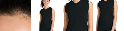 * Dry-Excel(tm) 100% polyester interlock smooth knit with color secure(r) technology that helps prevent dye migration * Fully sublimated design * Garment protects against the sun with 45+ UPF * Wicks moisture * Odor resistant * Ladies' fit * Tag-free label * V-neck collar * Set-in sleeves