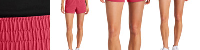 Designed for cheer, dance and other activities, this jersey knit short has a classic exposed waistband that can be worn rolled or unrolled.