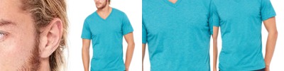The polyester/cotton/rayon construction of this stylish v-neck tee delivers cool comfort.